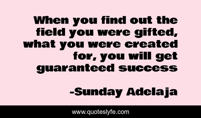 This page presents the quote "When you find out the field you were gifted, what you were created for, you will get guaranteed success". Author of this quote is Sunday Adelaja. This quote is about hard-work, success, self-discovery, work, gift, calling, potential, purpose,.