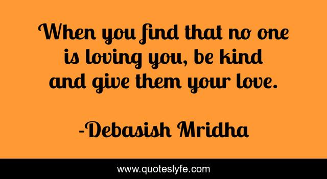 This page presents the quote "When you find that no one is loving you, be kind and give them your love.". Author of this quote is Debasish Mridha. This quote is about love, debasish-mridha, be-kind, loving-you, debasish-mridha-m-d, affection,.