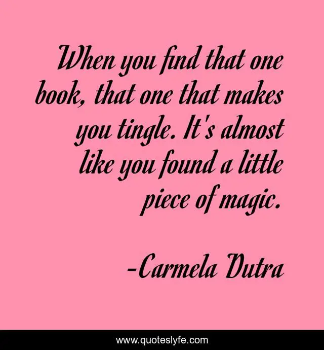 This page presents the quote "When you find that one book, that one that makes you tingle. It's almost like you found a little piece of magic.". Author of this quote is Carmela Dutra. This quote is about joy, books, magic, reading, experience,.