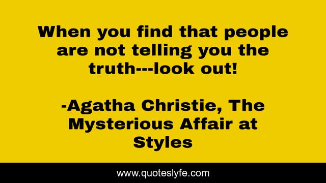 This page presents the quote "When you find that people are not telling you the truth---look out!". Author of this quote is Agatha Christie, The Mysterious Affair at Styles. .
