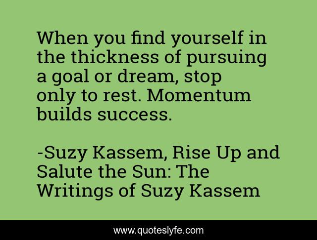 When you find yourself in the thickness of pursuing a goal or dream, stop only to rest. Momentum builds success.