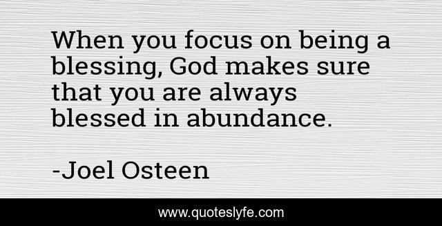 This page presents the quote "When you focus on being a blessing, God makes sure that you are always blessed in abundance.". Author of this quote is Joel Osteen. This quote is about faith, focus, blessed,.