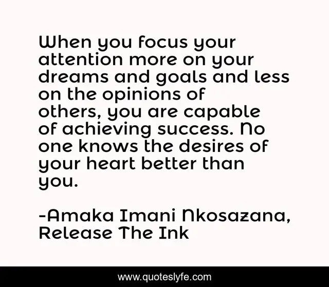 When you focus your attention more on your dreams and goals and less on the opinions of others, you are capable of achieving success. No one knows the desires of your heart better than you.