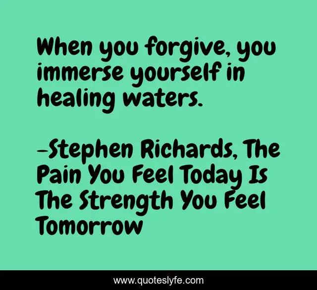 "Stephen Richards, The Pain You Feel Today Is The Strength You Feel Tomorrow Quotes." Quoteslyfe.com, 2025. Sat. 06 Dec. 2025. <https://www.quoteslyfe.com/quote/When-you-forgive-you-immerse-yourself-in-78288>.
