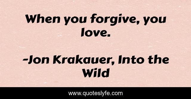 This page presents the quote "When you forgive, you love.". Author of this quote is Jon Krakauer, Into the Wild. This quote is about forgiveness, love, affection,.