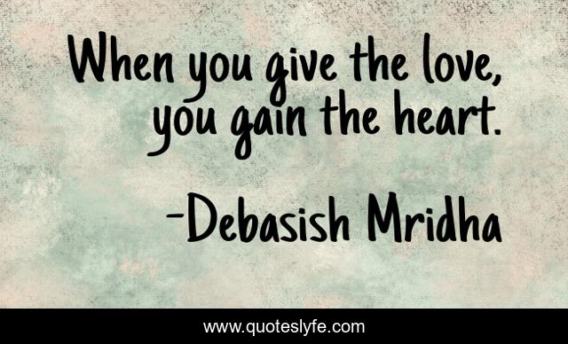 This page presents the quote "When you give the love, you gain the heart.". Author of this quote is Debasish Mridha. This quote is about life, love, knowledge, inspirational, intelligence, philosophy, wisdom, quotes, affection,.