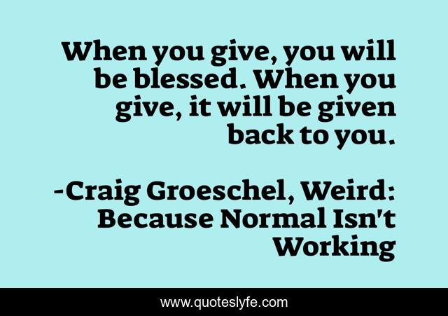 This page presents the quote "When you give, you will be blessed. When you give, it will be given back to you.". Author of this quote is Craig Groeschel, Weird: Because Normal Isn't Working. This quote is about back, be, given, give, it, blessed, to,.