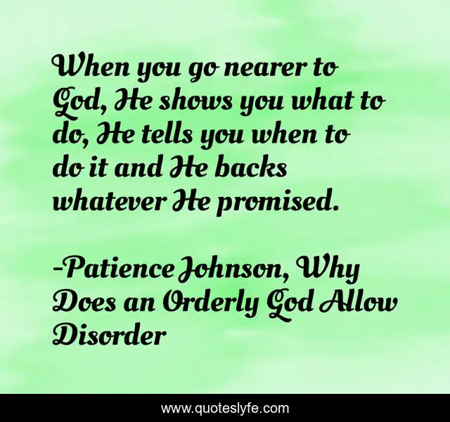 "Patience Johnson, Why Does an Orderly God Allow Disorder Quotes." Quoteslyfe.com, 2025. Sat. 06 Dec. 2025. <https://www.quoteslyfe.com/quote/When-you-go-nearer-to-God-He-45922>.