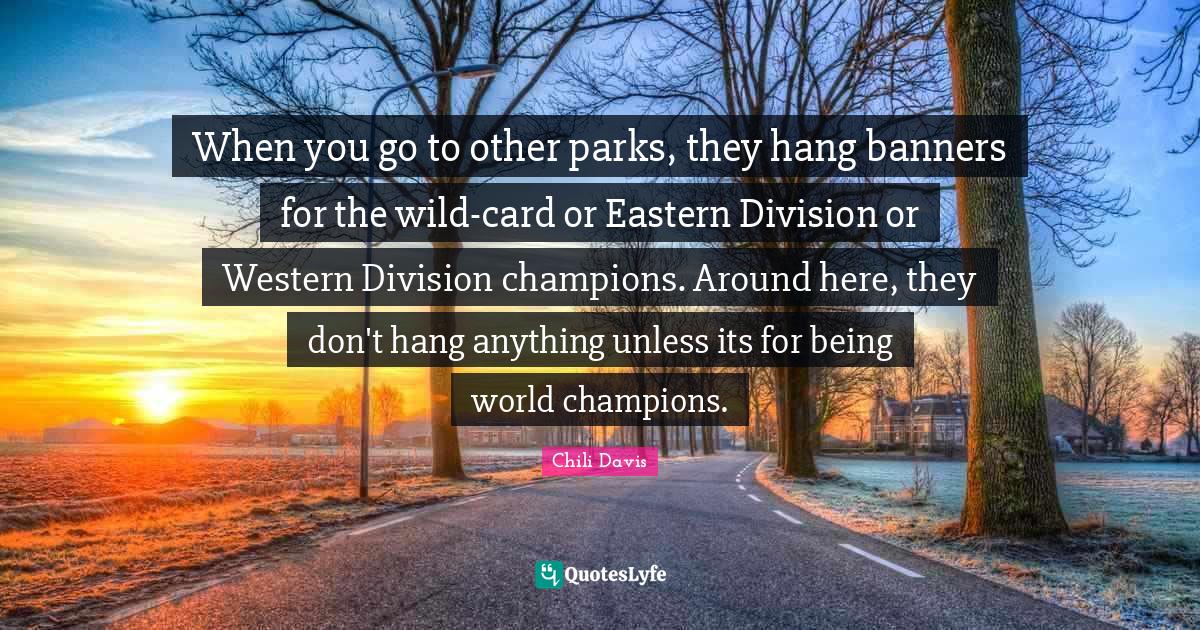 This page presents the quote "When you go to other parks, they hang banners for the wild-card or Eastern Division or Western Division champions. Around here, they don't hang anything unless its for being world champions.". Author of this quote is Chili Davis. This quote is about world champions, champion, yankees, eastern, western, parks, division, world,.