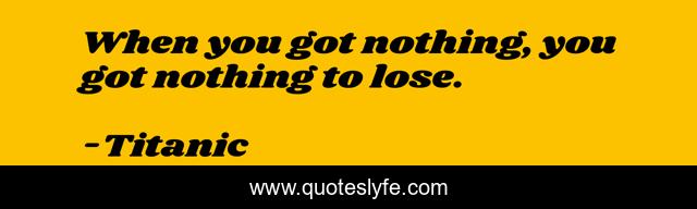 This page presents the quote "When you got nothing, you got nothing to lose.". Author of this quote is Titanic. .