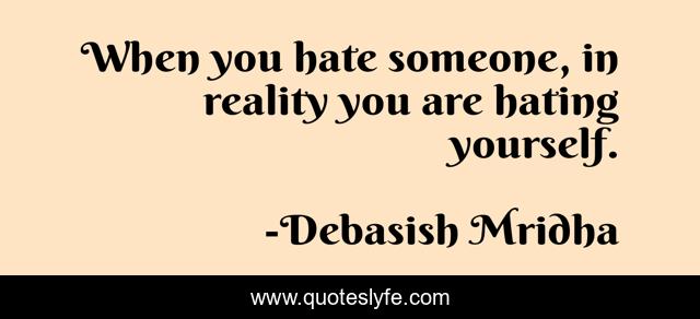 This page presents the quote "When you hate someone, in reality you are hating yourself.". Author of this quote is Debasish Mridha. This quote is about debasish, hate-someone, mridha, philosophy, debasish-mridha, reality, hating-yourself, hate,.