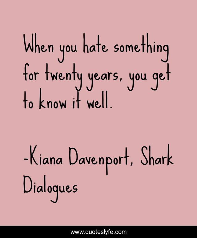 "Kiana Davenport, Shark Dialogues Quotes." Quoteslyfe.com, 2025. Fri. 05 Dec. 2025. <https://www.quoteslyfe.com/quote/When-you-hate-something-for-twenty-years-163521>.