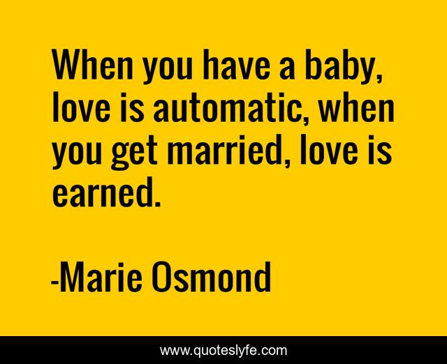 This page presents the quote "When you have a baby, love is automatic, when you get married, love is earned.". Author of this quote is Marie Osmond. This quote is about baby, love, affection, love is,.