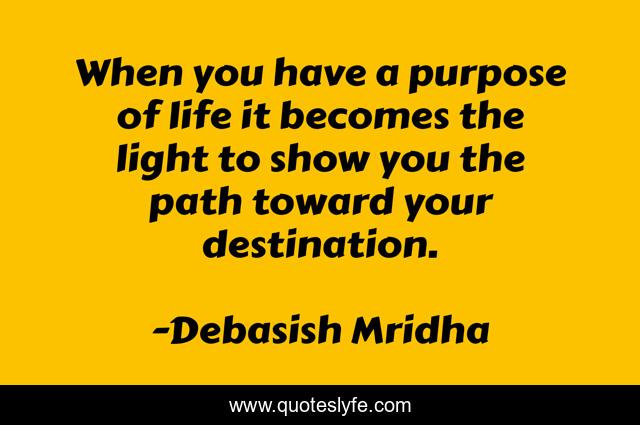 This page presents the quote "When you have a purpose of life it becomes the light to show you the path toward your destination.". Author of this quote is Debasish Mridha. This quote is about life, love, knowledge, inspirational, intelligence, philosophy, wisdom, quotes, affection,.