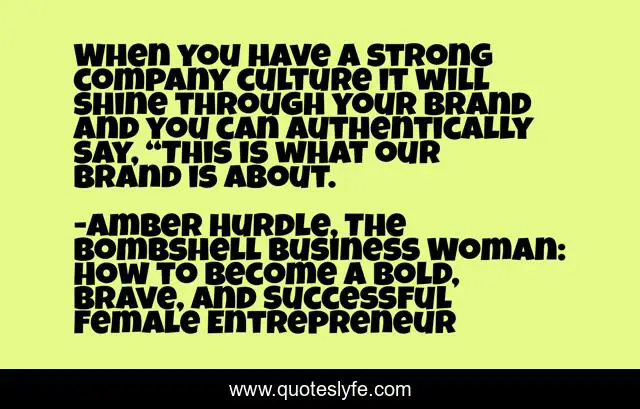 This page presents the quote "When you have a strong company culture it will shine through your brand and you can authentically say, “This is what our brand is about.". Author of this quote is Amber Hurdle, The Bombshell Business Woman: How to Become a Bold, Brave, and Successful Female Entrepreneur. This quote is about business, customer-service, marketing, brand, company-culture, leadership,.