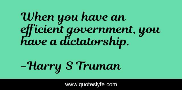 This page presents the quote "When you have an efficient government, you have a dictatorship.". Author of this quote is Harry S Truman. This quote is about efficient, dictatorship,.
