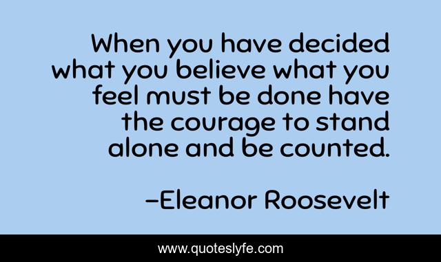 This page presents the quote "When you have decided what you believe what you feel must be done have the courage to stand alone and be counted.". Author of this quote is Eleanor Roosevelt. This quote is about commitment, belief,.