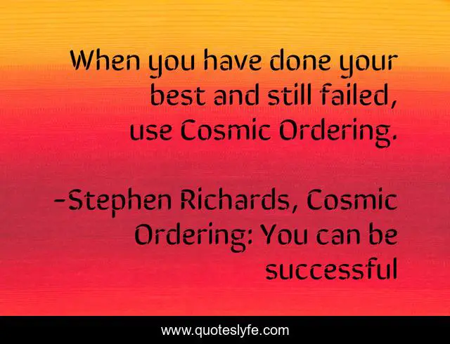 "Stephen Richards, Cosmic Ordering: You can be successful Quotes." Quoteslyfe.com, 2025. Sat. 06 Dec. 2025. <https://www.quoteslyfe.com/quote/When-you-have-done-your-best-and-16947>.