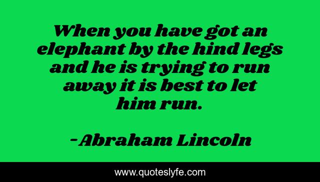 This page presents the quote "When you have got an elephant by the hind legs and he is trying to run away it is best to let him run.". Author of this quote is Abraham Lincoln. .