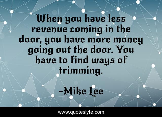 This page presents the quote "When you have less revenue coming in the door, you have more money going out the door. You have to find ways of trimming.". Author of this quote is Mike Lee. This quote is about door, find,.