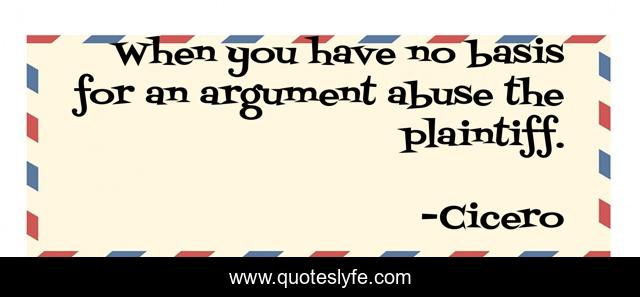 This page presents the quote "When you have no basis for an argument abuse the plaintiff.". Author of this quote is Cicero. This quote is about law, lawyers,.