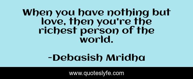This page presents the quote "When you have nothing but love, then you're the richest person of the world.". Author of this quote is Debasish Mridha. This quote is about life, love, knowledge, inspirational, intelligence, philosophy, wisdom, quotes, affection,.