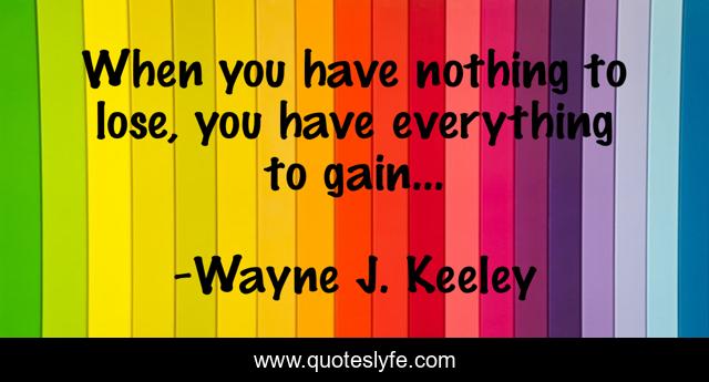 This page presents the quote "When you have nothing to lose, you have everything to gain...". Author of this quote is Wayne J. Keeley. This quote is about confidence, humor, positive, motivational, optimistic, inspirational, enthusiasm,.