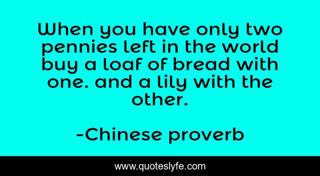 This page presents the quote "When you have only two pennies left in the world buy a loaf of bread with one. and a lily with the other.". Author of this quote is Chinese proverb. .