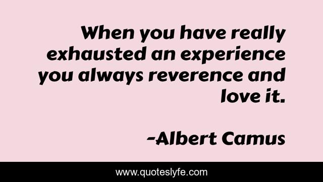 This page presents the quote "When you have really exhausted an experience you always reverence and love it.". Author of this quote is Albert Camus. This quote is about always, love, affection,.