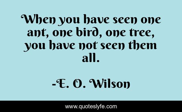 This page presents the quote "When you have seen one ant, one bird, one tree, you have not seen them all.". Author of this quote is E. O. Wilson. This quote is about tree, bird,.
