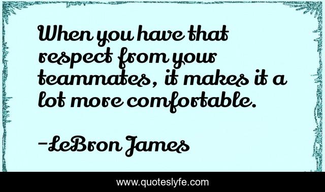 This page presents the quote "When you have that respect from your teammates, it makes it a lot more comfortable.". Author of this quote is LeBron James. This quote is about teammates, comfortable,.