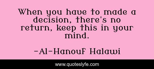 This page presents the quote "When you have to made a decision, there's no return, keep this in your mind.". Author of this quote is Al-Hanouf Halawi. This quote is about life, decisions,.