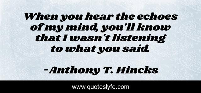 This page presents the quote "When you hear the echoes of my mind, you'll know that I wasn't listening to what you said.". Author of this quote is Anthony T. Hincks. This quote is about life, said, philosophy, mind, wasn-t, listening, echoes,.