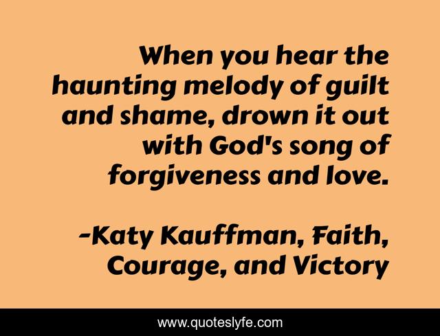 This page presents the quote "When you hear the haunting melody of guilt and shame, drown it out with God's song of forgiveness and love.". Author of this quote is Katy Kauffman, Faith, Courage, and Victory. This quote is about shame, hope, forgiveness, grace, the-love-of-god,.