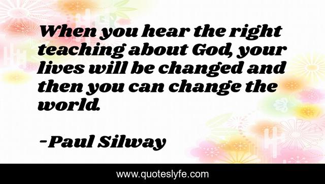 This page presents the quote "When you hear the right teaching about God, your lives will be changed and then you can change the world.". Author of this quote is Paul Silway. .