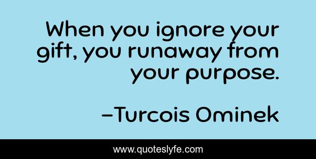 This page presents the quote "When you ignore your gift, you runaway from your purpose.". Author of this quote is Turcois Ominek. This quote is about talent, purpose, gift, self-worth,.