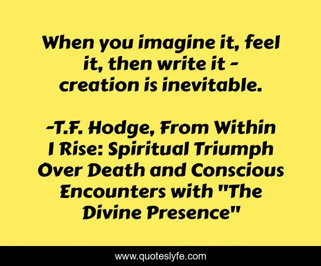 "T.F. Hodge, From Within I Rise: Spiritual Triumph Over Death and Conscious Encounters with "The Divine Presence" Quotes." Quoteslyfe.com, 2025. Fri. 05 Dec. 2025. <https://www.quoteslyfe.com/quote/When-you-imagine-it-feel-it-then-126161>.