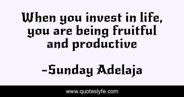 This page presents the quote "When you invest in life, you are being fruitful and productive". Author of this quote is Sunday Adelaja. This quote is about life, productive, productivity, finance, money, invest, blessing, fruitful, job,.