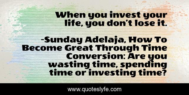 "Sunday Adelaja, How To Become Great Through Time Conversion: Are you wasting time, spending time or investing time? Quotes." Quoteslyfe.com, 2025. Sun. 07 Dec. 2025. <https://www.quoteslyfe.com/quote/When-you-invest-your-life-you-don-138349>.