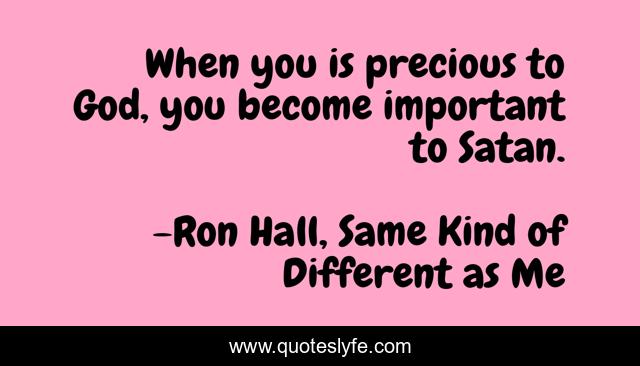 This page presents the quote "When you is precious to God, you become important to Satan.". Author of this quote is Ron Hall, Same Kind of Different as Me. .