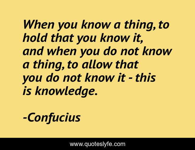 This page presents the quote "When you know a thing, to hold that you know it, and when you do not know a thing, to allow that you do not know it - this is knowledge.". Author of this quote is Confucius. .