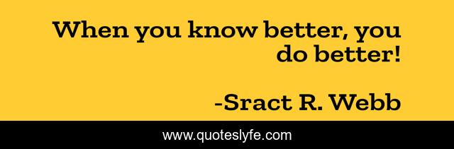 This page presents the quote "When you know better, you do better!". Author of this quote is Sract R. Webb. This quote is about inspirational-life, humor,.
