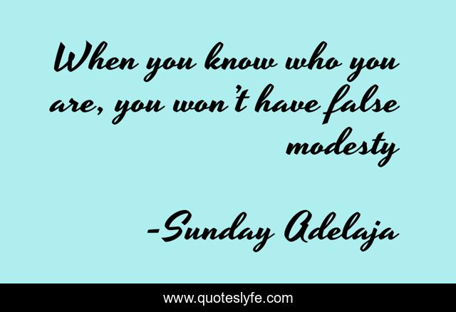 This page presents the quote "When you know who you are, you won’t have false modesty". Author of this quote is Sunday Adelaja. This quote is about false-modesty, self-knowledge, life, modesty, calling, purpose, truth,.
