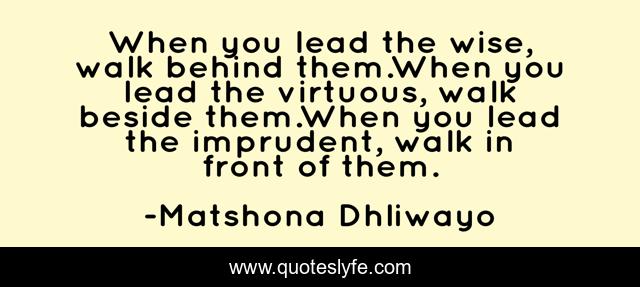 "Matshona Dhliwayo Quotes." Quoteslyfe.com, 2025. Fri. 05 Dec. 2025. <https://www.quoteslyfe.com/quote/When-you-lead-the-wise-walk-behind-257969>.