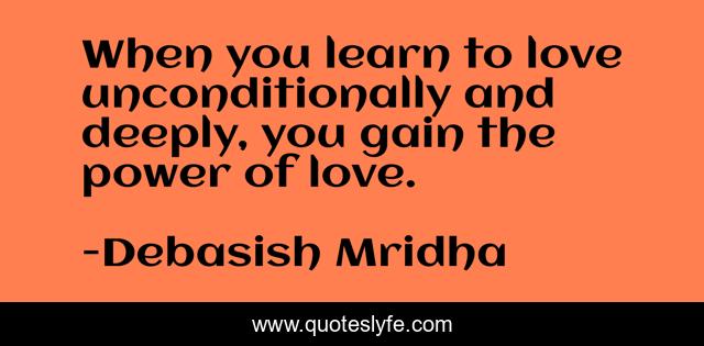 This page presents the quote "When you learn to love unconditionally and deeply, you gain the power of love.". Author of this quote is Debasish Mridha. This quote is about life, love, knowledge, inspirational, intelligence, philosophy, wisdom, quotes, affection,.