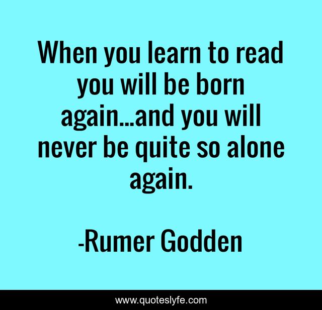 This page presents the quote "When you learn to read you will be born again...and you will never be quite so alone again.". Author of this quote is Rumer Godden. This quote is about books, reading, literacy,.
