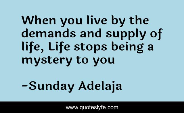 This page presents the quote "When you live by the demands and supply of life, Life stops being a mystery to you". Author of this quote is Sunday Adelaja. This quote is about mystery, live, demand, supply,.