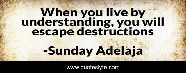 This page presents the quote "When you live by understanding, you will escape destructions". Author of this quote is Sunday Adelaja. This quote is about living-by-understanding, destruction,.