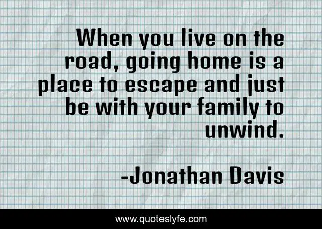 This page presents the quote "When you live on the road, going home is a place to escape and just be with your family to unwind.". Author of this quote is Jonathan Davis. This quote is about home, live, road,.
