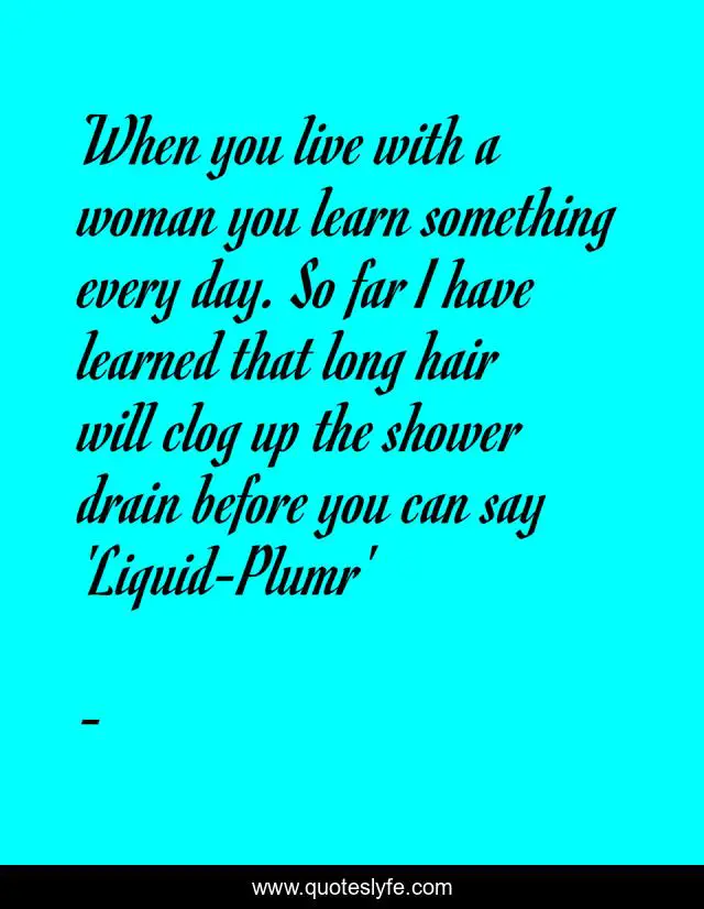 This page presents the quote "When you live with a woman you learn something every day. So far I have learned that long hair will clog up the shower drain before you can say 'Liquid-Plumr'". Author of this quote is . This quote is about the time traveler's wife, audrey niffenegger,.